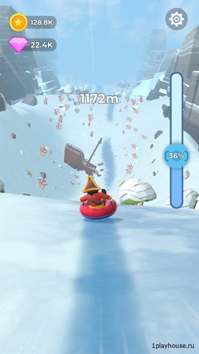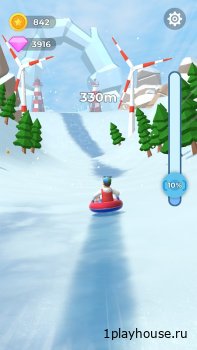 - Персонажи и сани: открываемые герои и нестандартные конструкции, на которых предстоит слетать вниз по склону, станут мотивацией для прогресса;