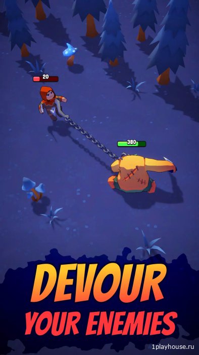 - Пожирание врагов – ключевая механика: каждая победа над противниками меняет персонажа и открывает неожиданные боевые перспективы;