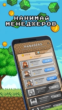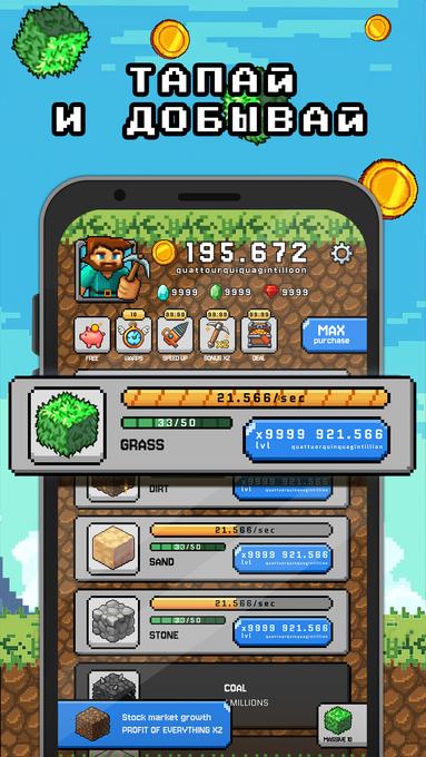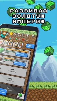 - Классический «ленивый» геймплей: сочетание простого кликера с глубокой системой бизнес-менеджмента в воксельном стиле;